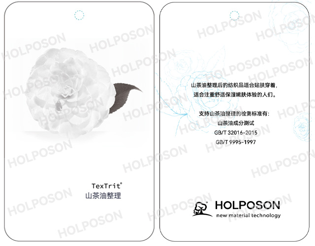 山茶油整理剂HOLPOSON®Ultra-Nutro是在纺织品后整理工艺中添加的保湿整理剂,主要成份是山茶油,采用微胶囊技术把山茶油等保湿因子完整包覆,从而加工到纺织品上具有耐水洗的效能。
