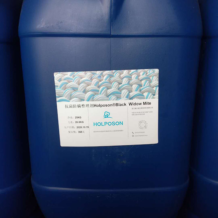 HOLPOSON® Black Widow Mite也叫黑寡妇®,是有机菊酯类高分子抗菌防螨整理剂,适用于几乎所有类型的纤维,如:棉,粘胶,涤纶,尼龙等天然、合成纤维及混纺织物。即可应用在针织物、梭织物、家纺产品、装饰用布等纺织品。本产品可以抑制以下细菌:大肠杆菌、白色念珠菌等,有效防止螨虫的生长、繁殖,赋予纺织品抗菌防螨功能